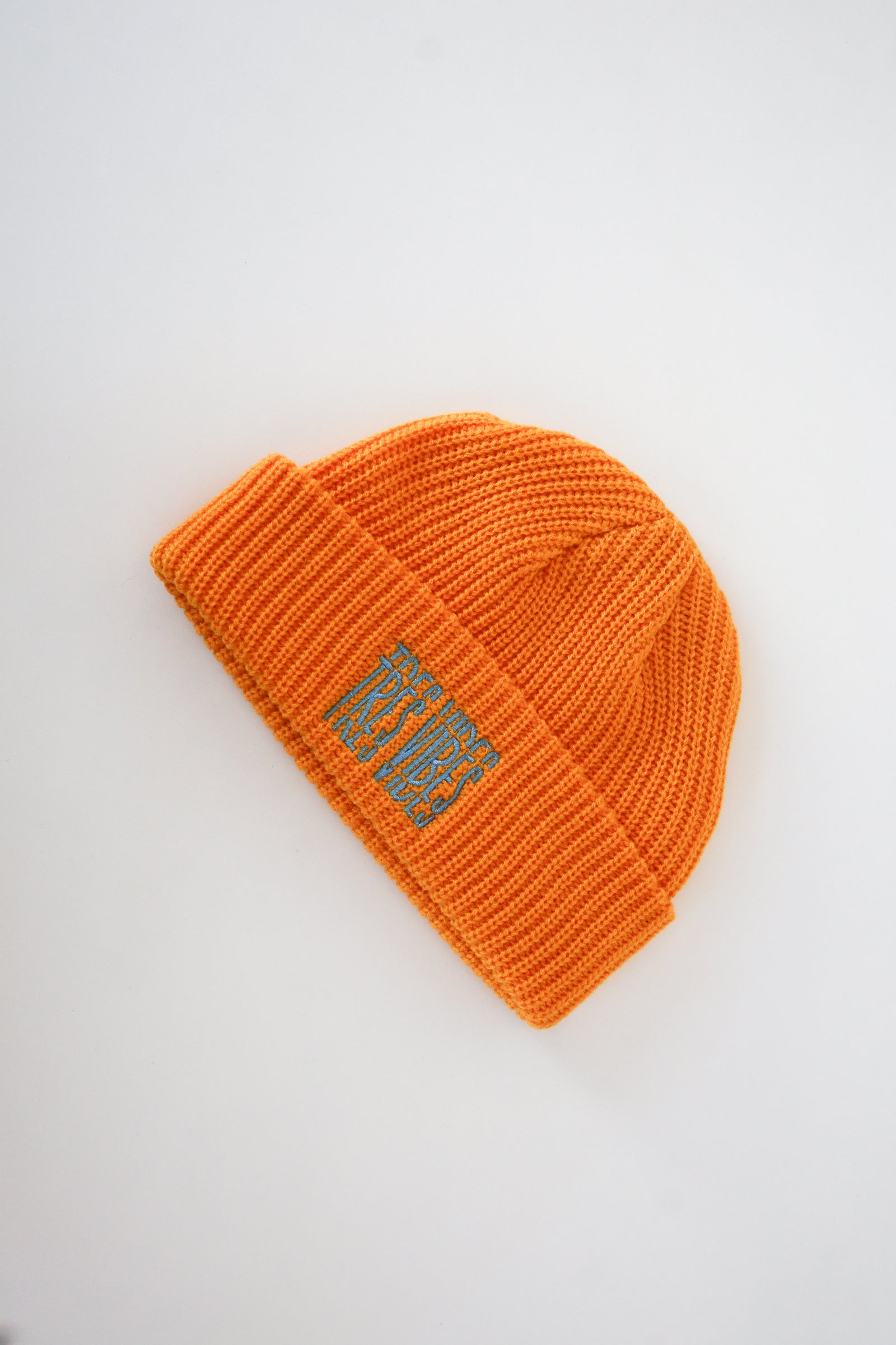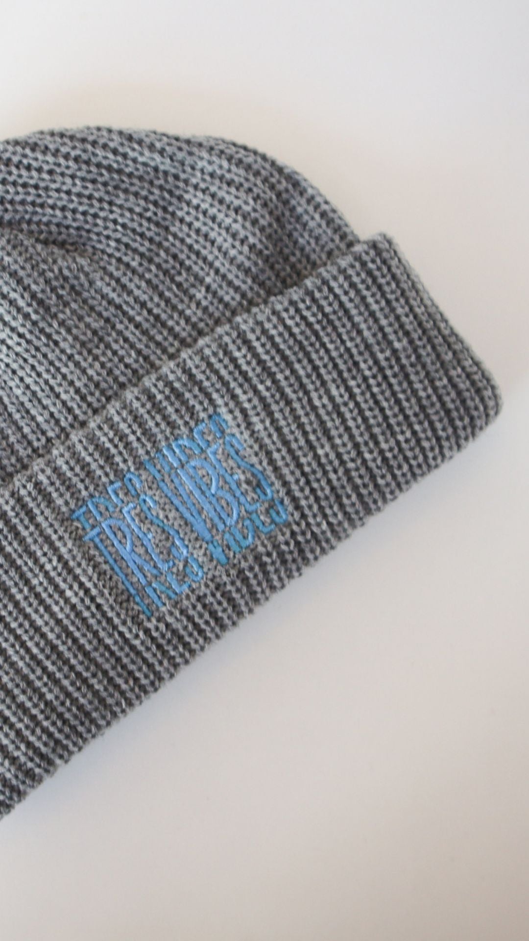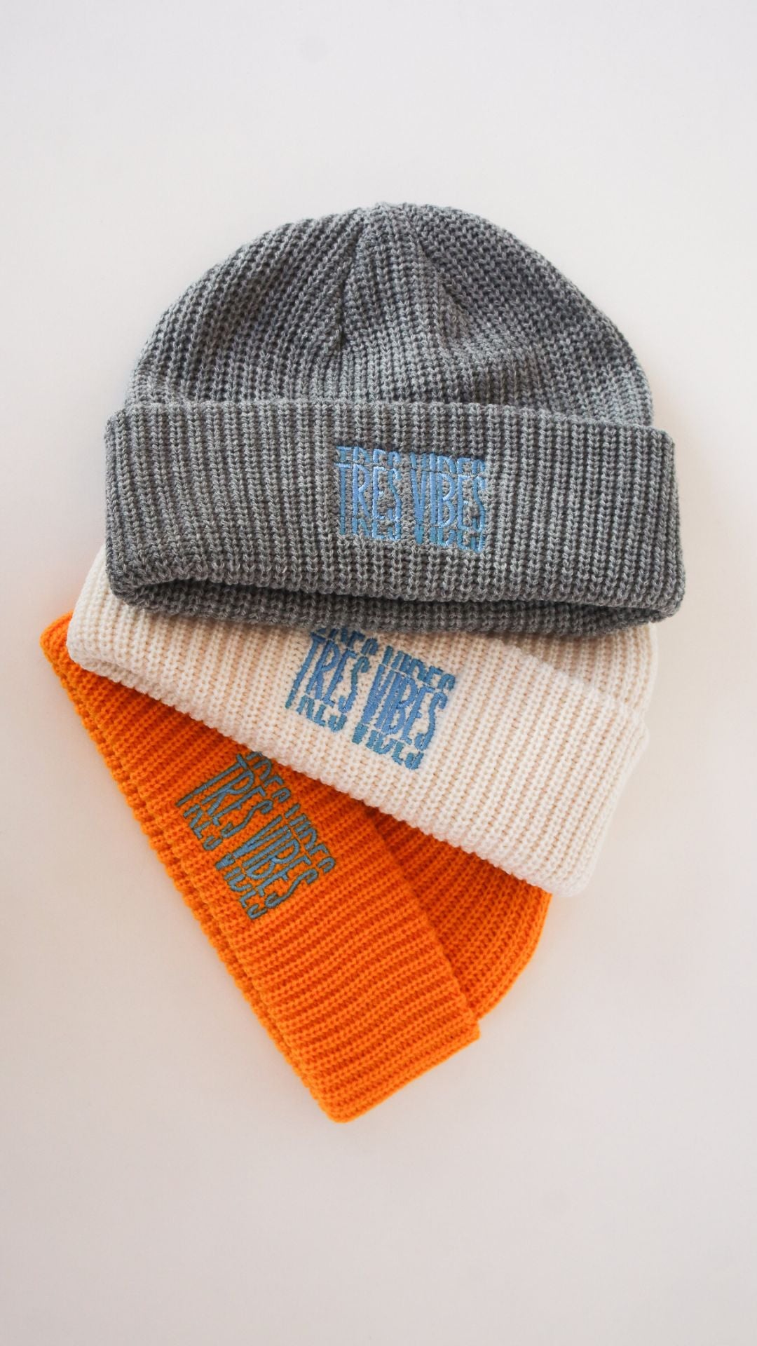Our embroidered Tres Vibes fisherman-style beanie comes in three statement colours with blue embroidery front central. It has a snug and comfortable fit and one size fits most.